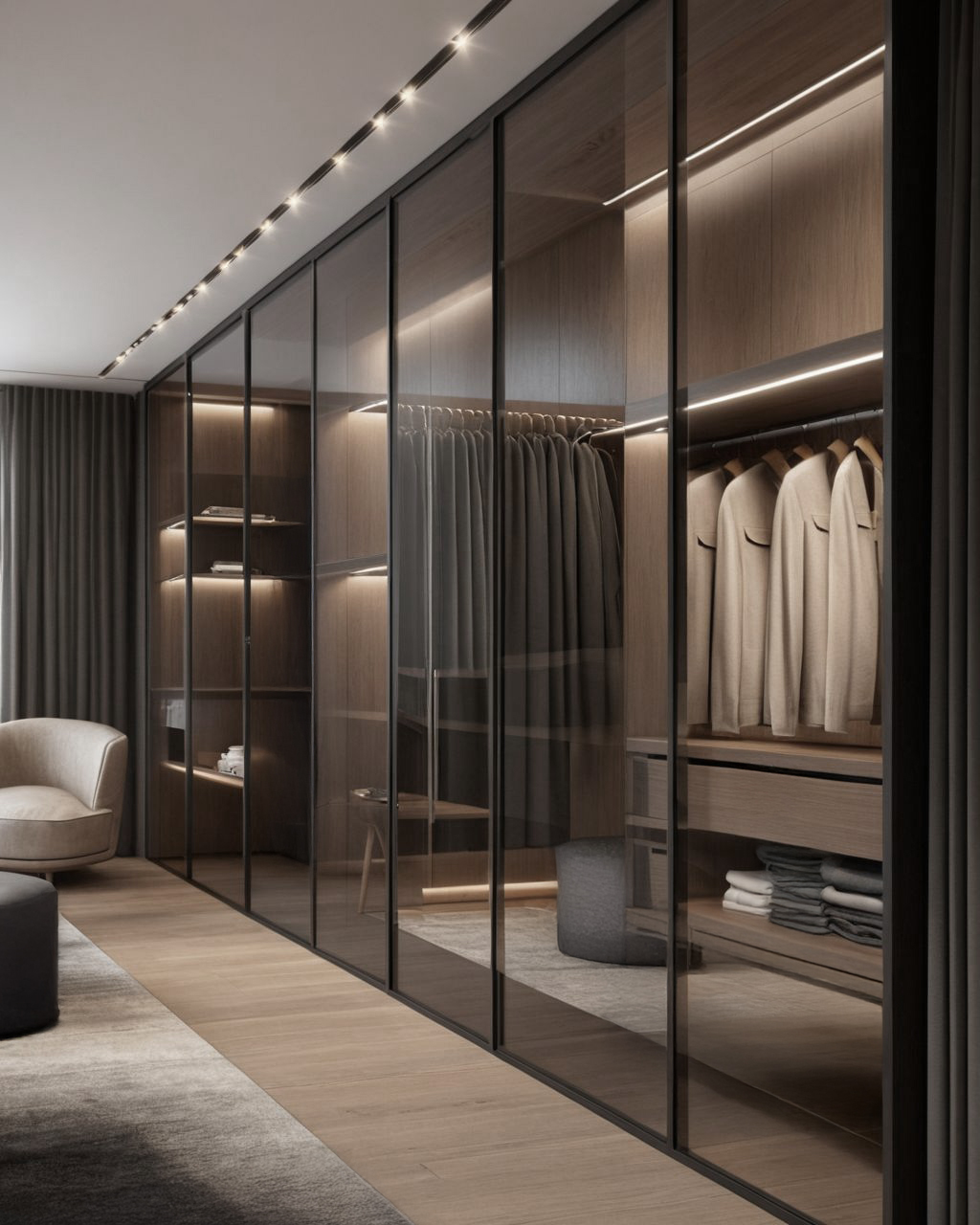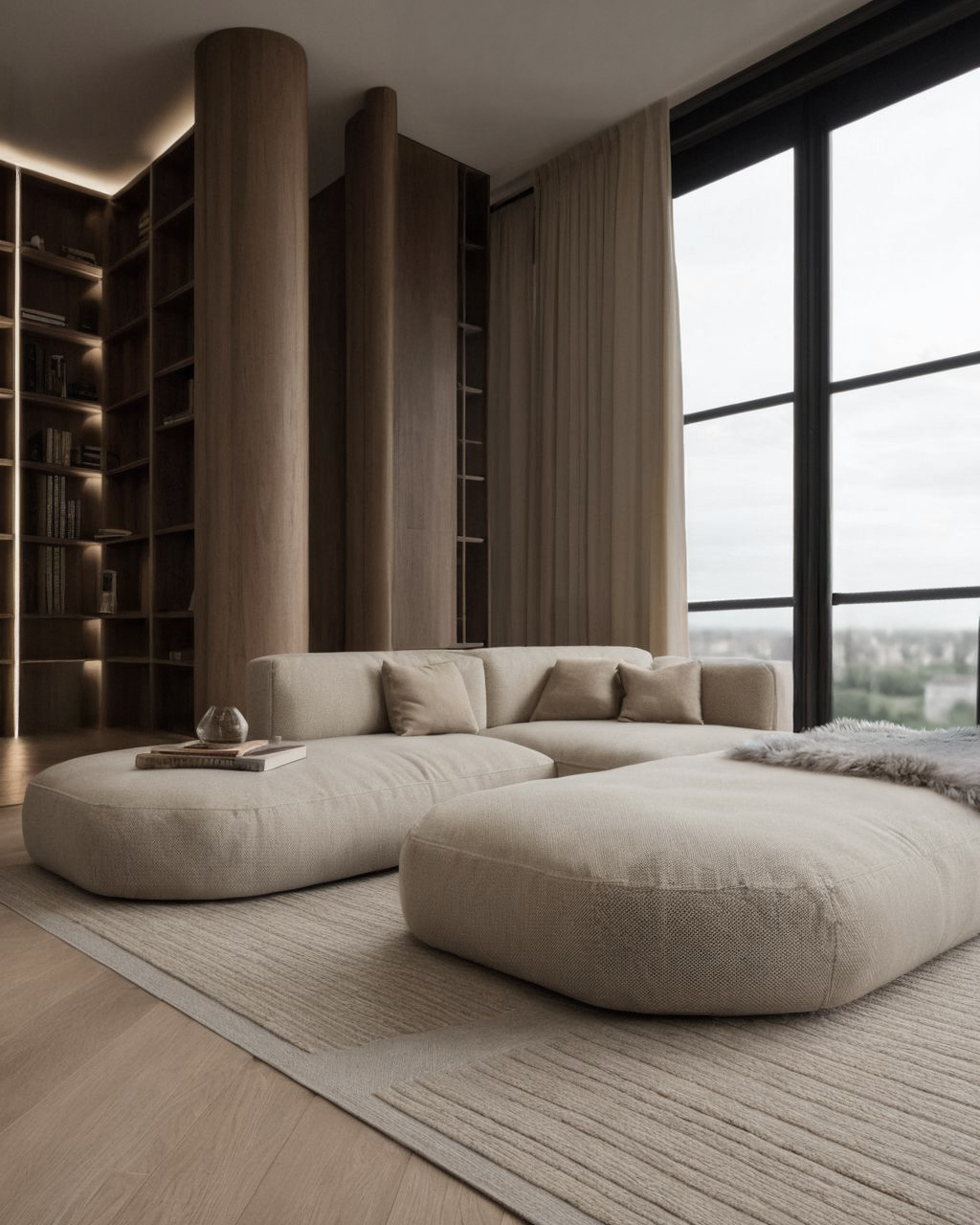 Wnętrza luksusowego mieszkania w Talamanca na Ibizie to nasz hołd dla elegancji i współczesnego minimalizmu. Ciepłe odcienie brązu i beżu są perfekcyjnie zbalansowane, tworząc atmosferę przytulności i harmonii. Te delikatne barwy tworzą tło dla nowoczesnych mebli i nastrojowego oświetlenia.